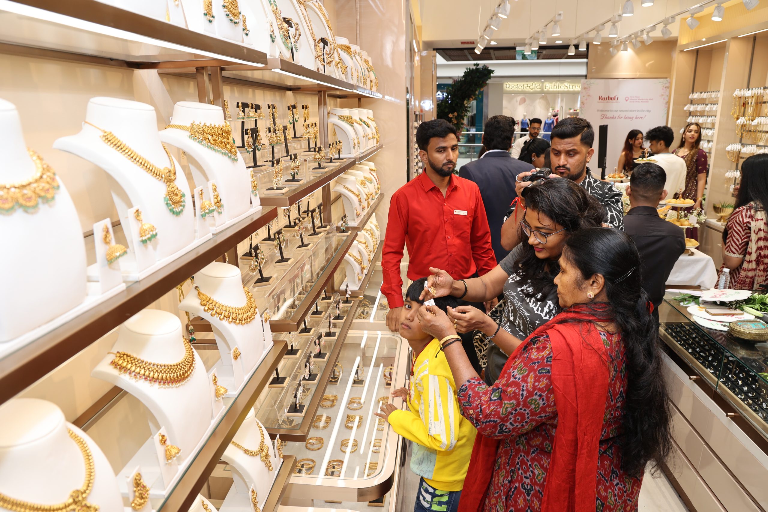 Kalyani stole the show with her playful hook, trying on necklaces and saying, “Idu ishtu pattu, iddu ishtu pattu” (I want this… I want this too!), capturing festive shopping excitement.
