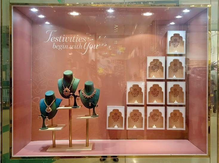 The warm tones, layered compositions, and ornate jewellery displays evoke a sense of celebration, radiance, and timeless Indian craftsmanship— marking the perfect start to the festive season.